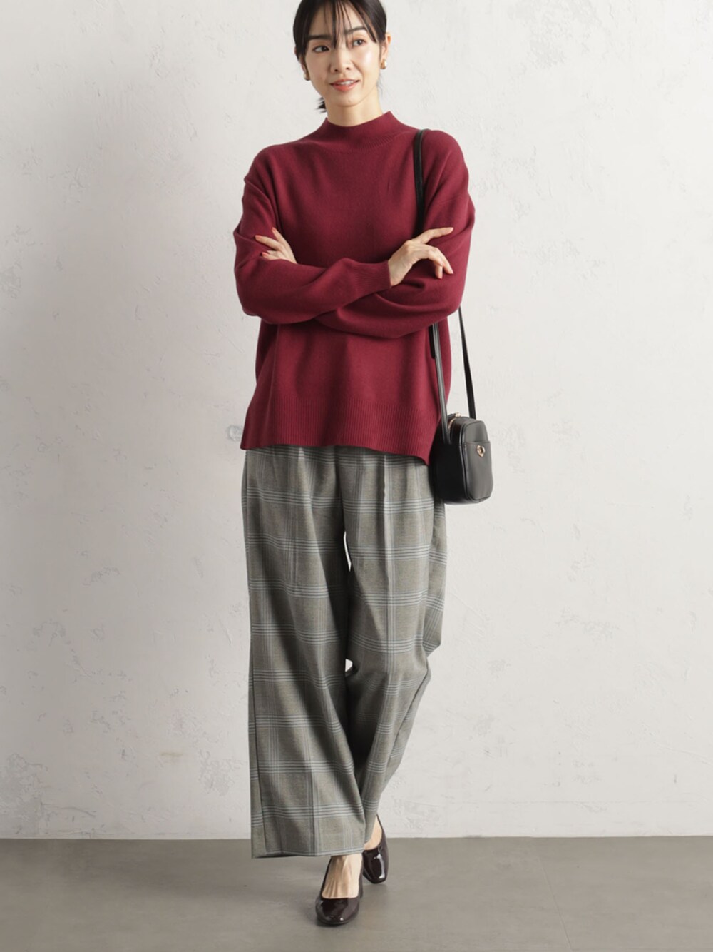 首まわりを優しく包み込むハイネックのニット。 首元と裾はリブに切り替えて、メリハリ感を添えています。