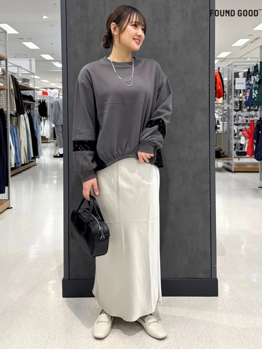FOUND GOOD(FOUND GOOD)のスカート「STRサテンフレアSK」を使ったコーディネート