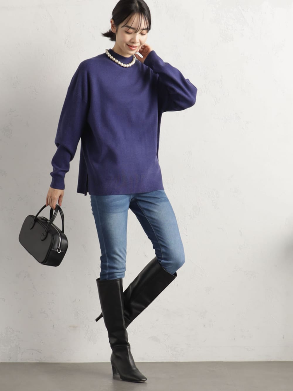 伸縮性のある、もちっとした弾力性と柔らかな肌触りが特徴のニット。 ご自宅でのお手入れも簡単な素材です。