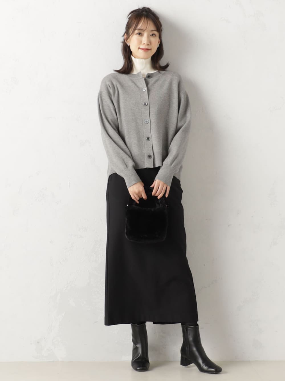 シャツやタートルネック、ハイネックなど重ね着しやすいクルーネックカーディガン。ボトムを選ばず幅広く着回していただけるアイテムです。