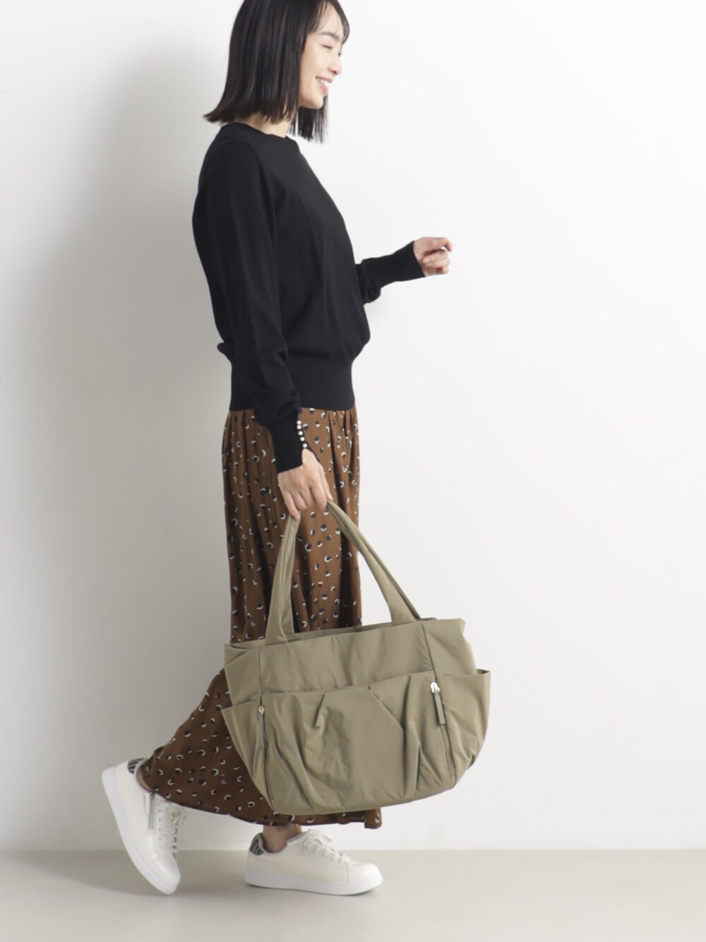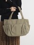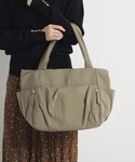 丸みのあるフォルムが可愛いトートバッグ。 荷物を入れた時に綺麗なフォルムが出るように、本体にタックを入れふっくらとした仕上がりに。 多ポケットデザインで収納力も抜群。