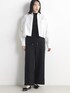 フロントのピンタックディテールが、すっきりとした脚のラインを演出。 ウエストはコード仕様でフィット感の調整が可能。 日常着からオフィスまで、幅広いシーンで活躍出来るデザイン。