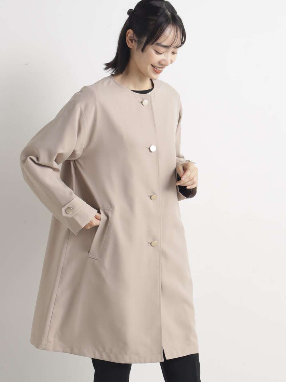 FOUND GOOD(FOUND GOOD)のノーカラーコート「O/ハッスイノーカラーコート」を使ったコーディネート