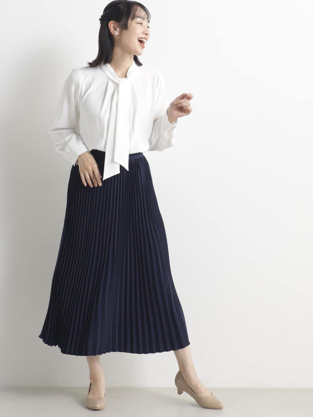 ボウタイが表情を華やがせてくれるブラウス。 ボウタイを取り外してシンプルなノーカラーにすることもでき、着こなしの幅が広がります。