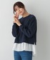 ポンチ素材を使用した綺麗見えの1枚! 裾のギャザー布帛がアクセントとなりふんわり優しい印象に。