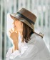 春夏ぴったりなシート素材のハット。 取り外し可能なひも付きで自転車移動でも風に飛ばされる心配なし。