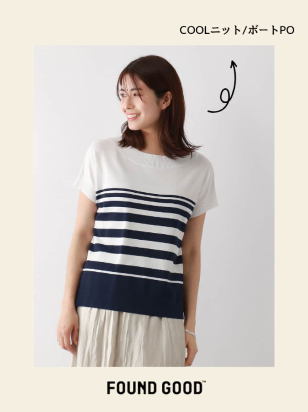 14G→ハイゲージで細かく編み込まれたニットで、なめらかで冷たい手触りが特徴。 二の腕の気になる部分が隠れて涼し気なスッキリボートネックがポイント!オンにもオフにも幅広いシーンのコーデに合わせやすい万能ニット。