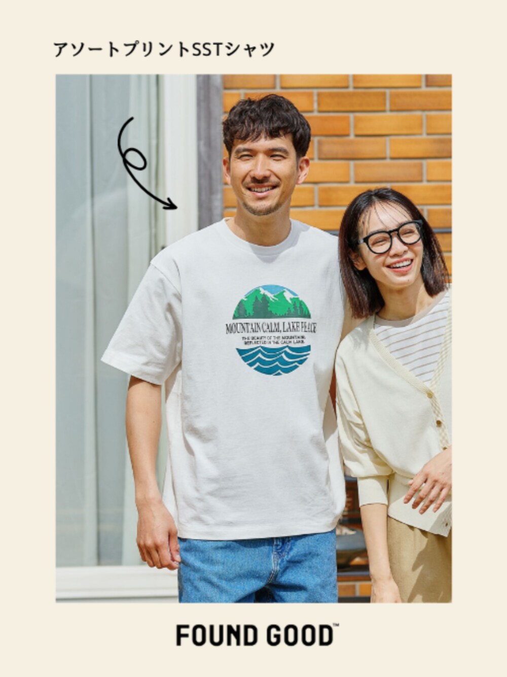FOUND GOOD(FOUND GOOD)のTシャツ/カットソー「アソートプリントSSTシャツ」を使ったコーディネート