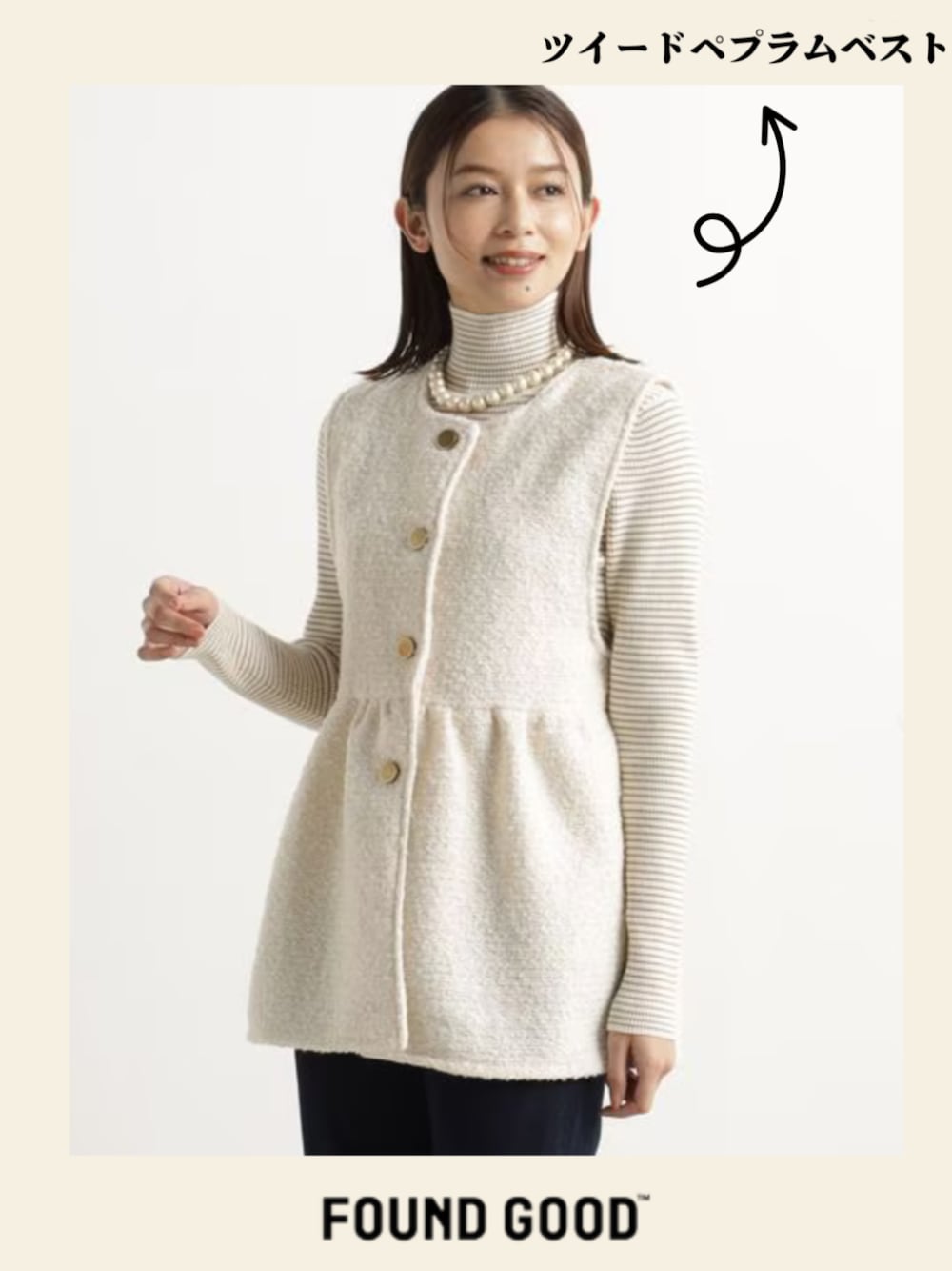 FOUND GOOD(FOUND GOOD)のベスト「ツイードペプラムベスト」を使ったコーディネート