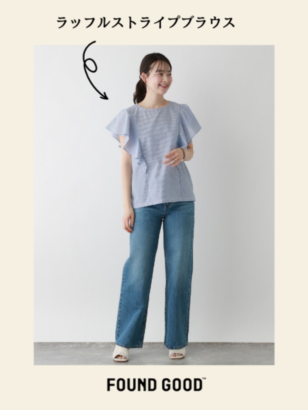 FOUND GOOD(FOUND GOOD)のシャツ/ブラウス「ラッフルストライプブラウス」を使ったコーディネート