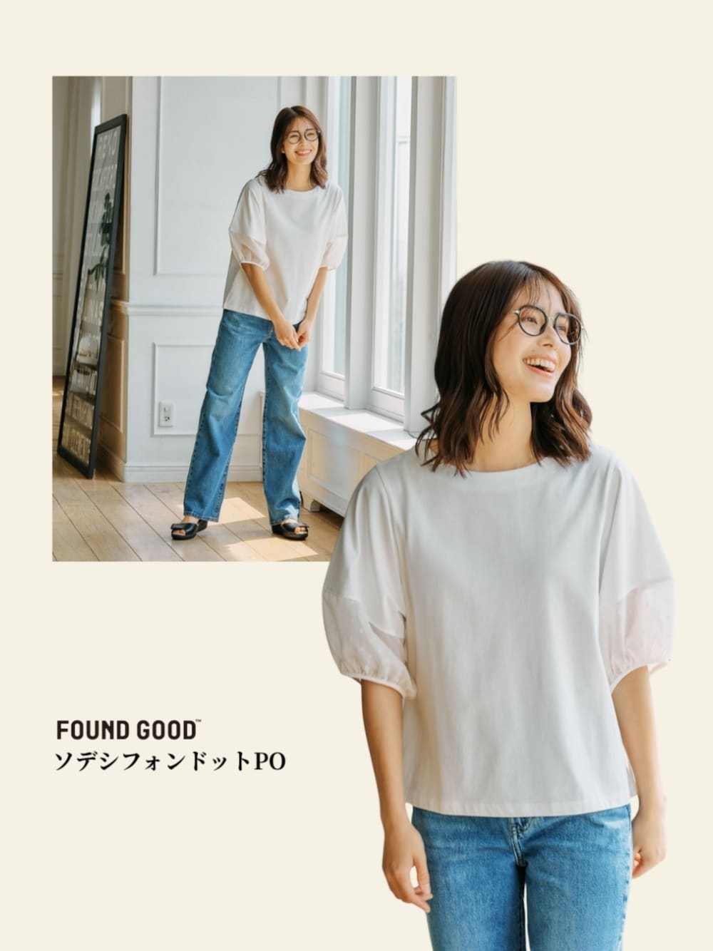 FOUND GOOD(FOUND GOOD)のTシャツ/カットソー「ソデシフォンドットPO」を使ったコーディネート