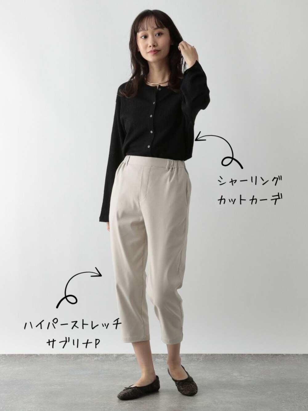 肌離れ良く、コーディネイトしやすいアイテムに仕上がっている。シワが気にならない、1枚あると便利なアイテム。