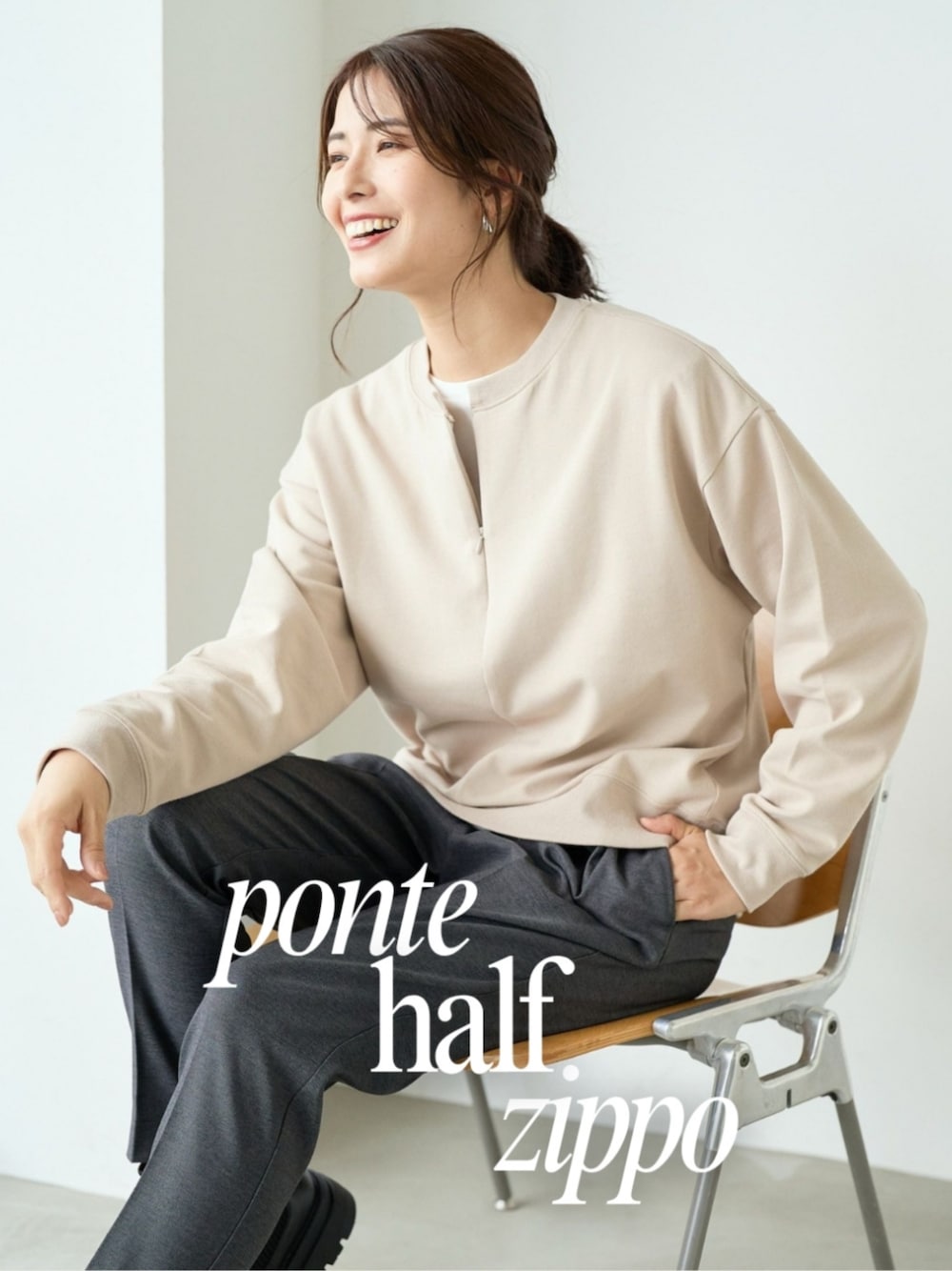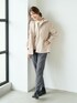 キーネック見えする胸元は抜け感+おしゃれな仕上がり。