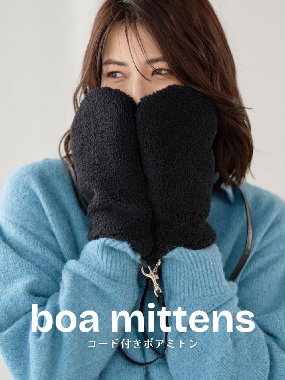 柔らかくて暖かいボア素材で、手をしっかりと包み込む。