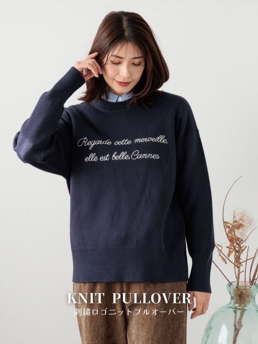 スウェットライクに伸縮性のある肌触りの良い糸で編み立てたロゴ刺繍プルオーバーです。