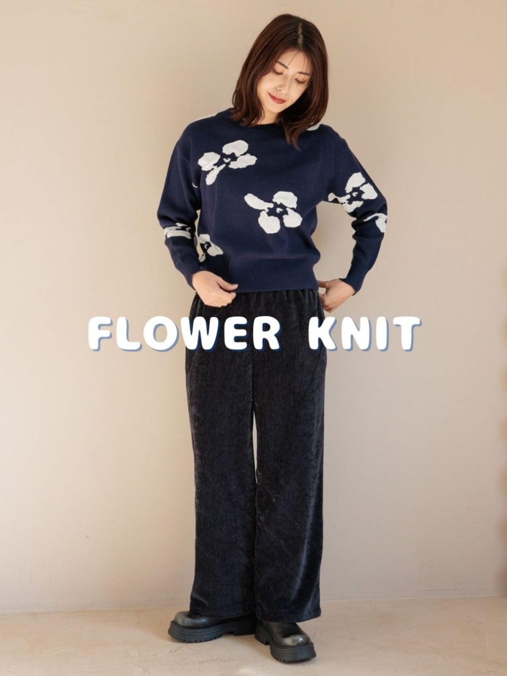 FOUND GOOD(FOUND GOOD)のニット/セーター「フクレフラワーニットPO」を使ったコーディネート
