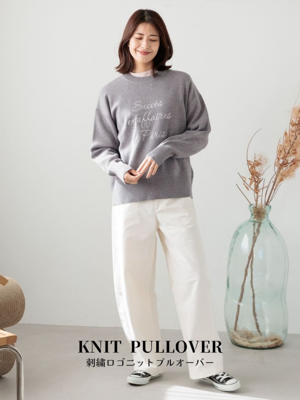 大人でも着やすいロゴ刺繍プルオーバー