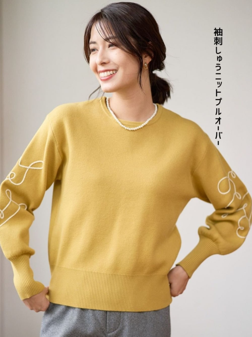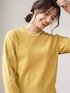袖に入ったフラワーモチーフのコード刺繍がポイントのニットプルオーバー。