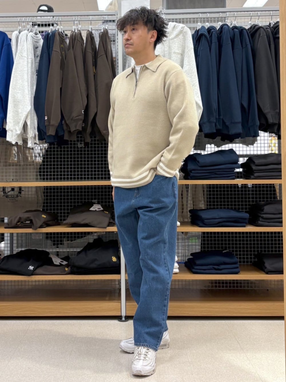 配色のリブデザインがアクセントのスポーツテイスト感あるニット! デニムとの相性も良い感じです。