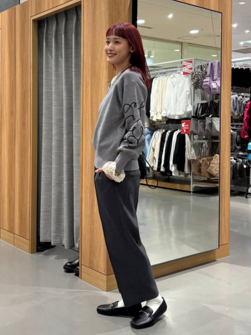 🏷️袖刺繍ニット 袖のニュアンス刺繍が大人カワイイ🩶 シンプルな色使いですが、 刺繍がポイントになってコーデが決まります✨ 袖のふんわりシルエットでさりげなく腕周りもカバー👌 🏷️裏起毛ツイルワイドクロップドパンツ 寒い冬に嬉しい裏起毛😮💨 ワイド幅なので締め付け感なくゆったり履けます💫 センタープレスが入っているので、 ダボっとしすぎないのも嬉しい◎