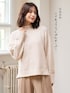 ふわふわ素材でネック周りも気持ち良く、ハイネックであたたかい!