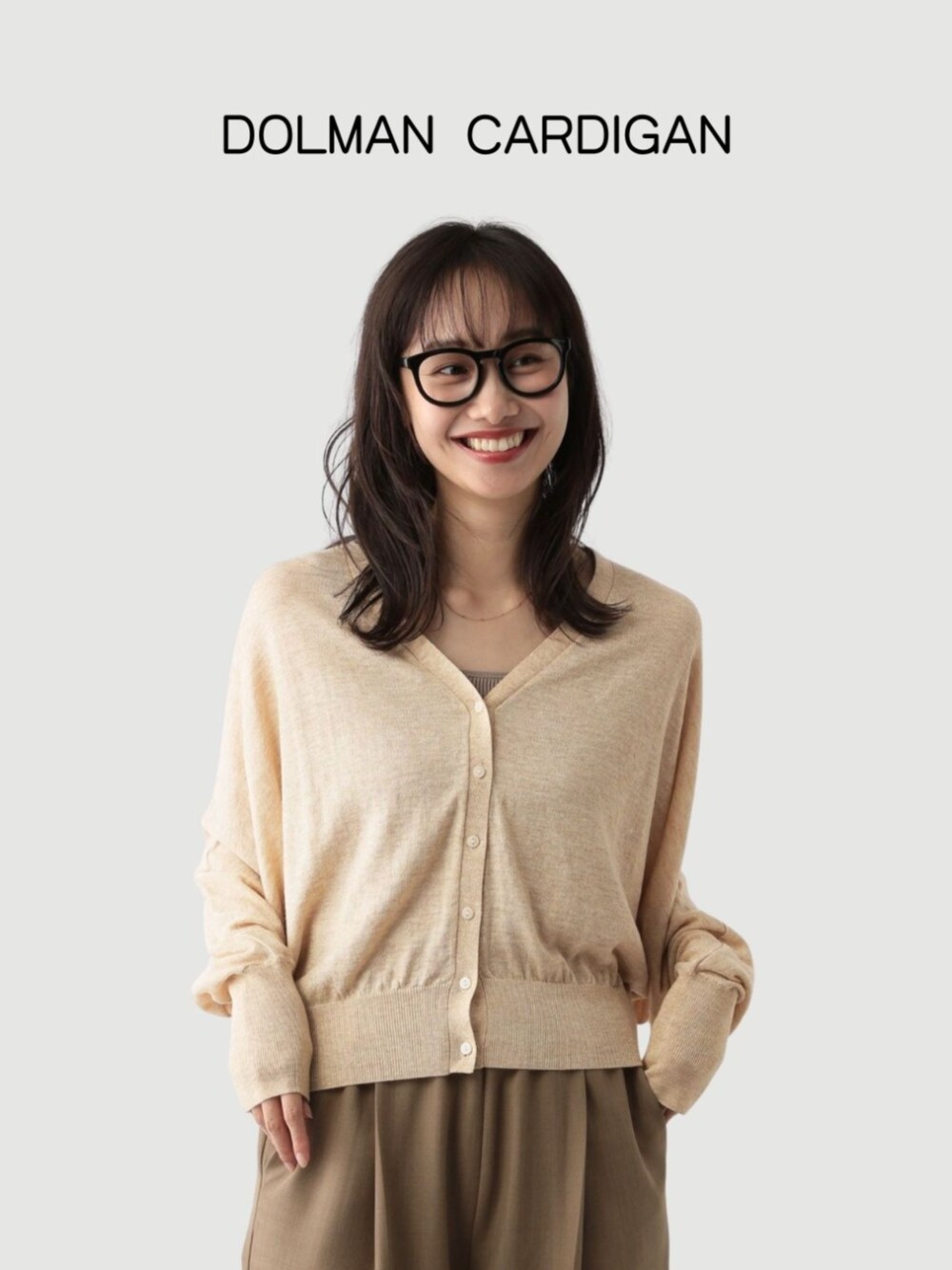 薄手素材でドルマンスリーブのショート丈カーディガン。