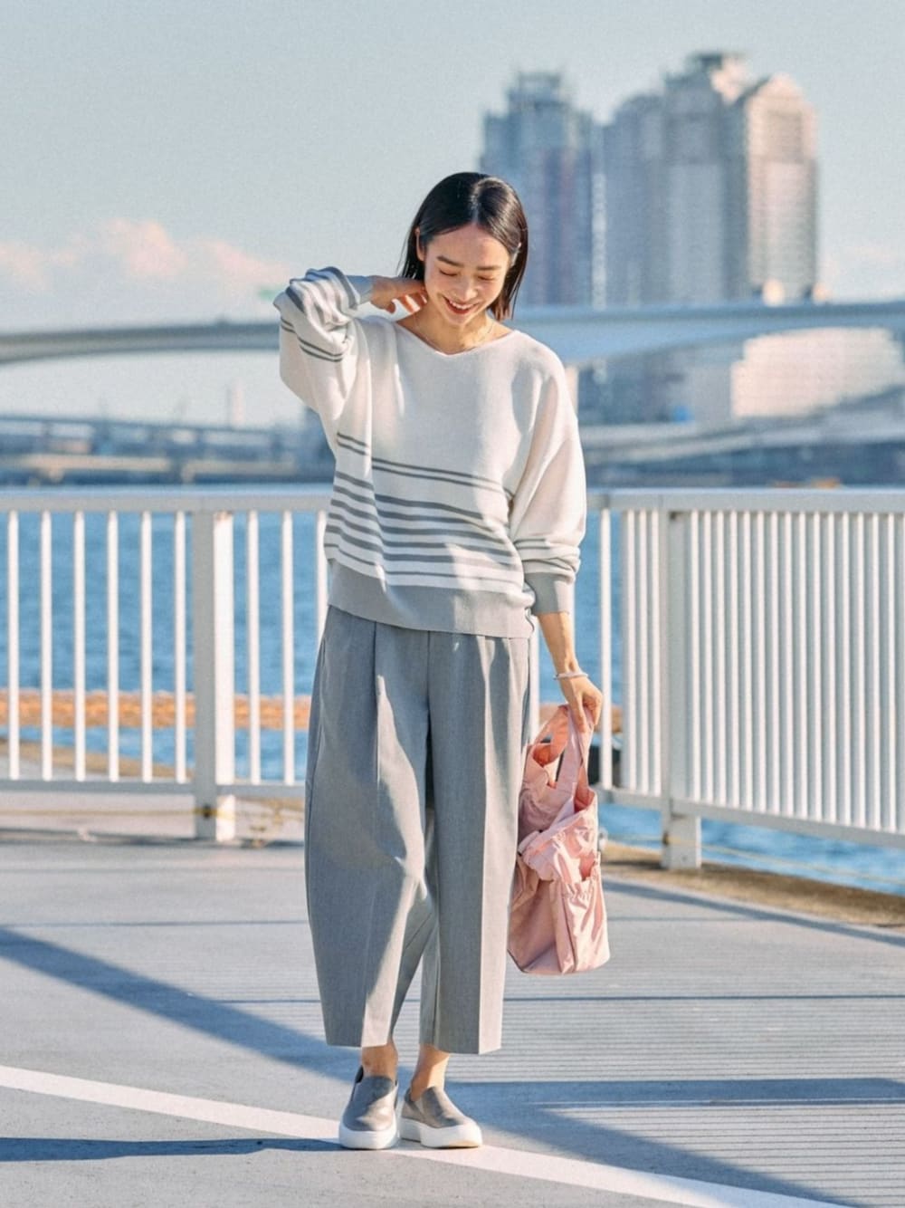 クロップド丈のワイドパンツは足首が華奢に見えでクールながらも女性らしさを演出