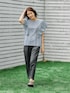 麻混のポリエステル素材を使用、適度な肉感とドライタッチが特徴の素材。