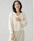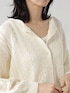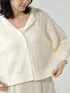 清涼感たっぷりな透かし編みで春夏の軽い羽織りにぴったり。 デコルテがきれいに見える襟がポイント。