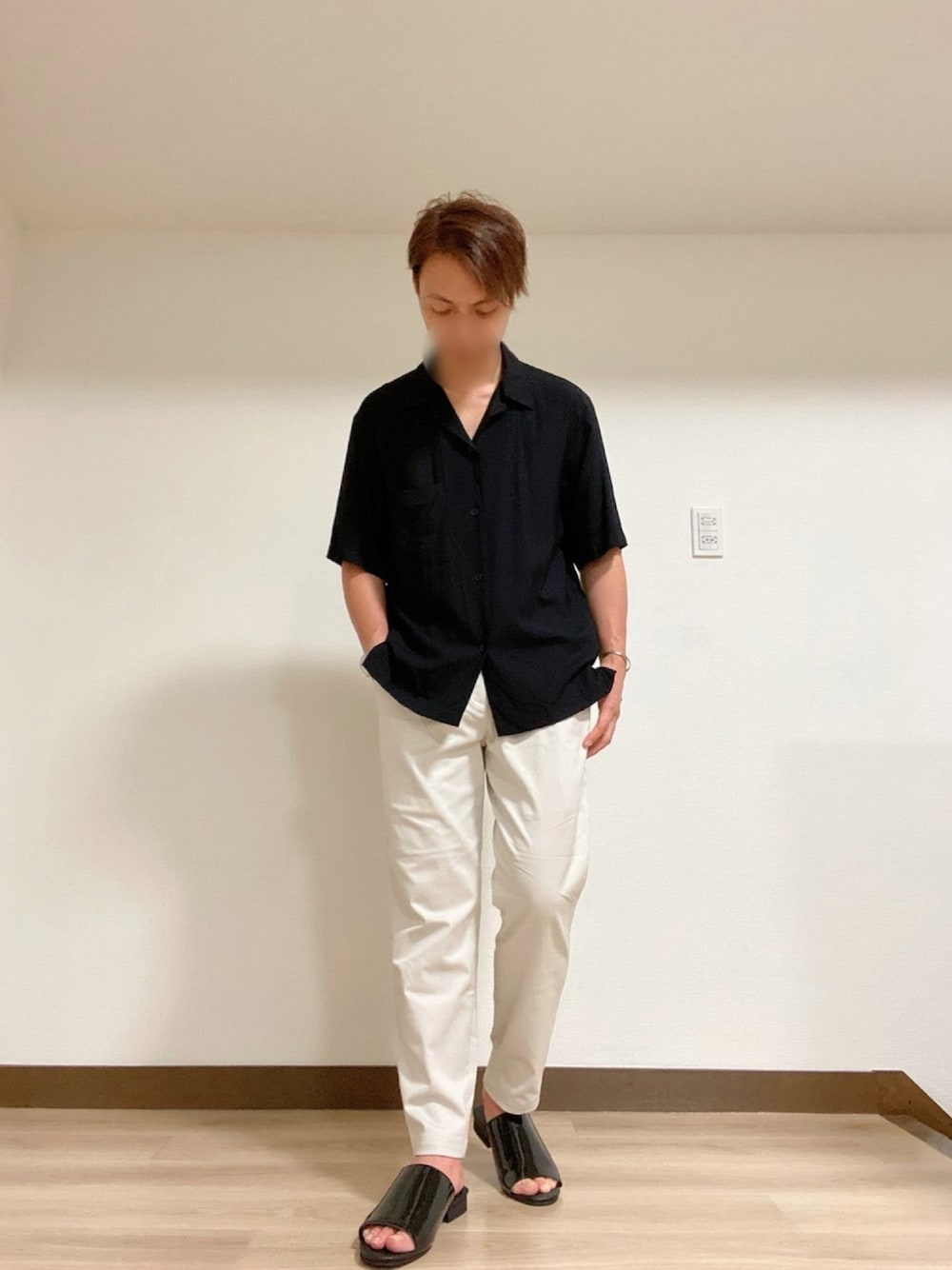 【モノトーンコーデ】 オープンカラーシャツに ホフホワイトのチノパンを合わせて 大人コーデに。