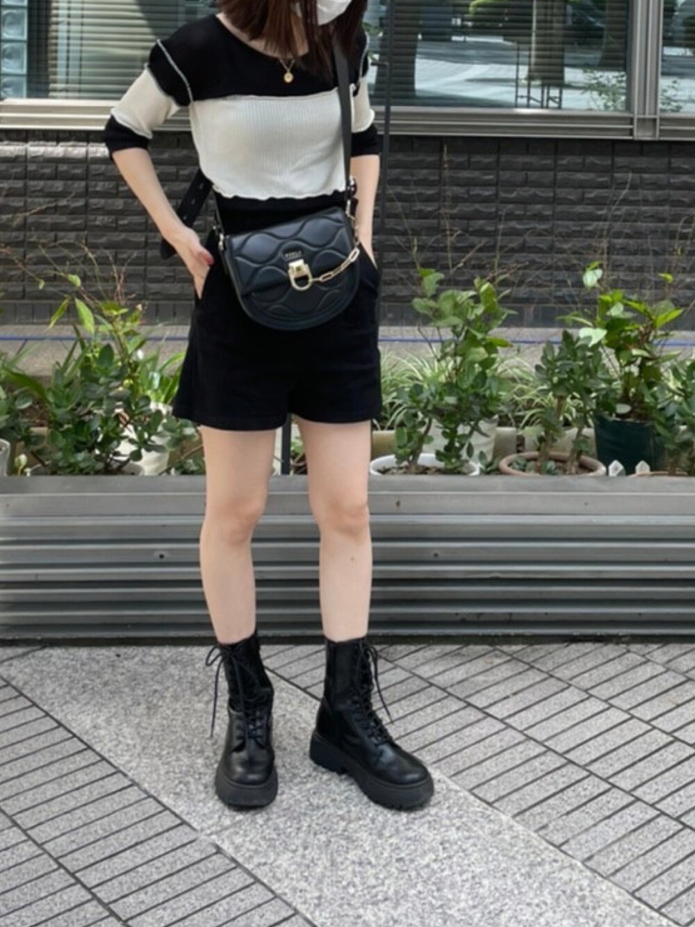 久しぶりの投稿✔️ モノトーンコーデ🐼🤍 早く長袖着たいなあ、、