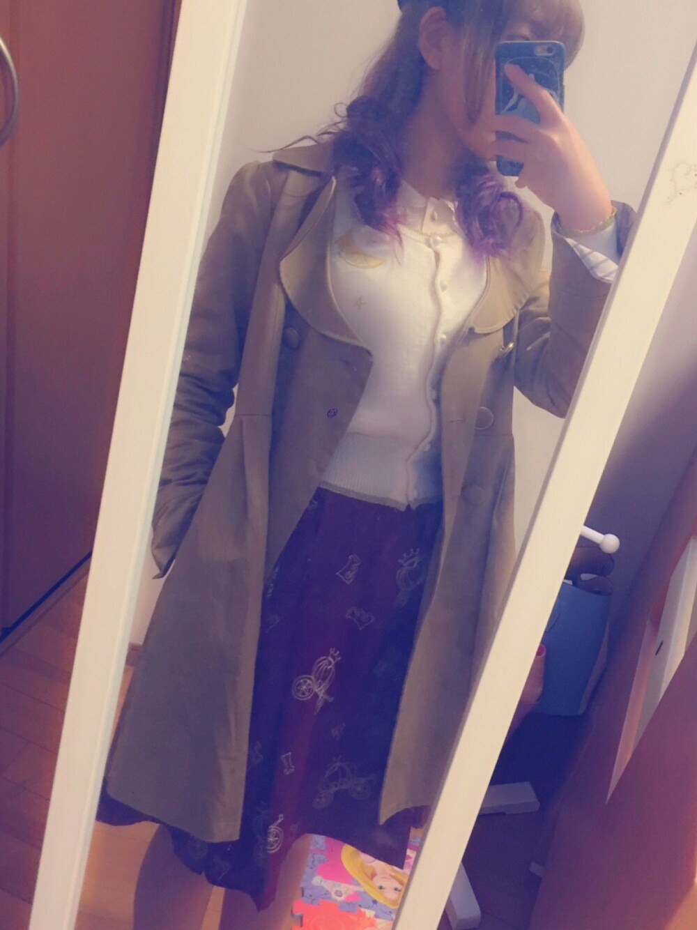 レッド系のスカートを着用したレディースの春コーディネートの1枚目の写真
