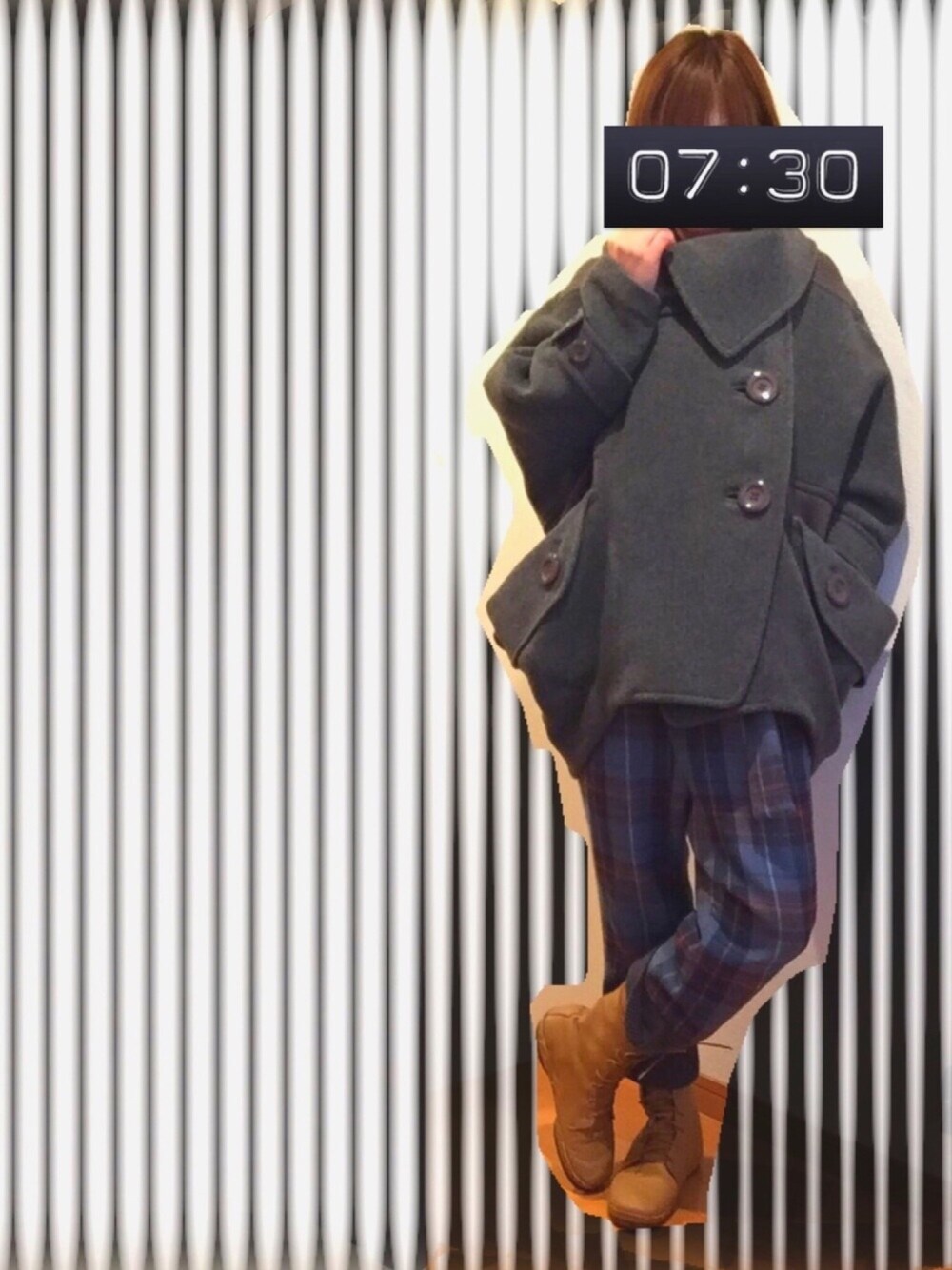 おはようございます! 休みも今日で終わり! 部屋の片付け頑張る! これは何年か前のコート✨ ベイマックスほど大きいよね。 私が着たらそーでもないか😂 大好きなチェック柄のサルエルパンツに koosのブーツは定番のコーデ♡