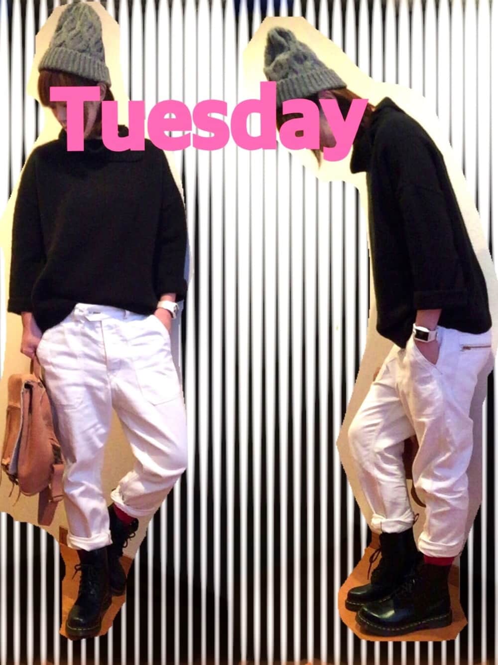 こうやって 黒のニット、白のサルエルパンツに赤い靴下 それにDr.Martensのブーツを合わせたくて全て揃えたやつ♡ でも私が着ると想像してたのと違うな〜やっぱり😂 細くなったらもっと似合うかな〜 見てくださってありがとうございます✨