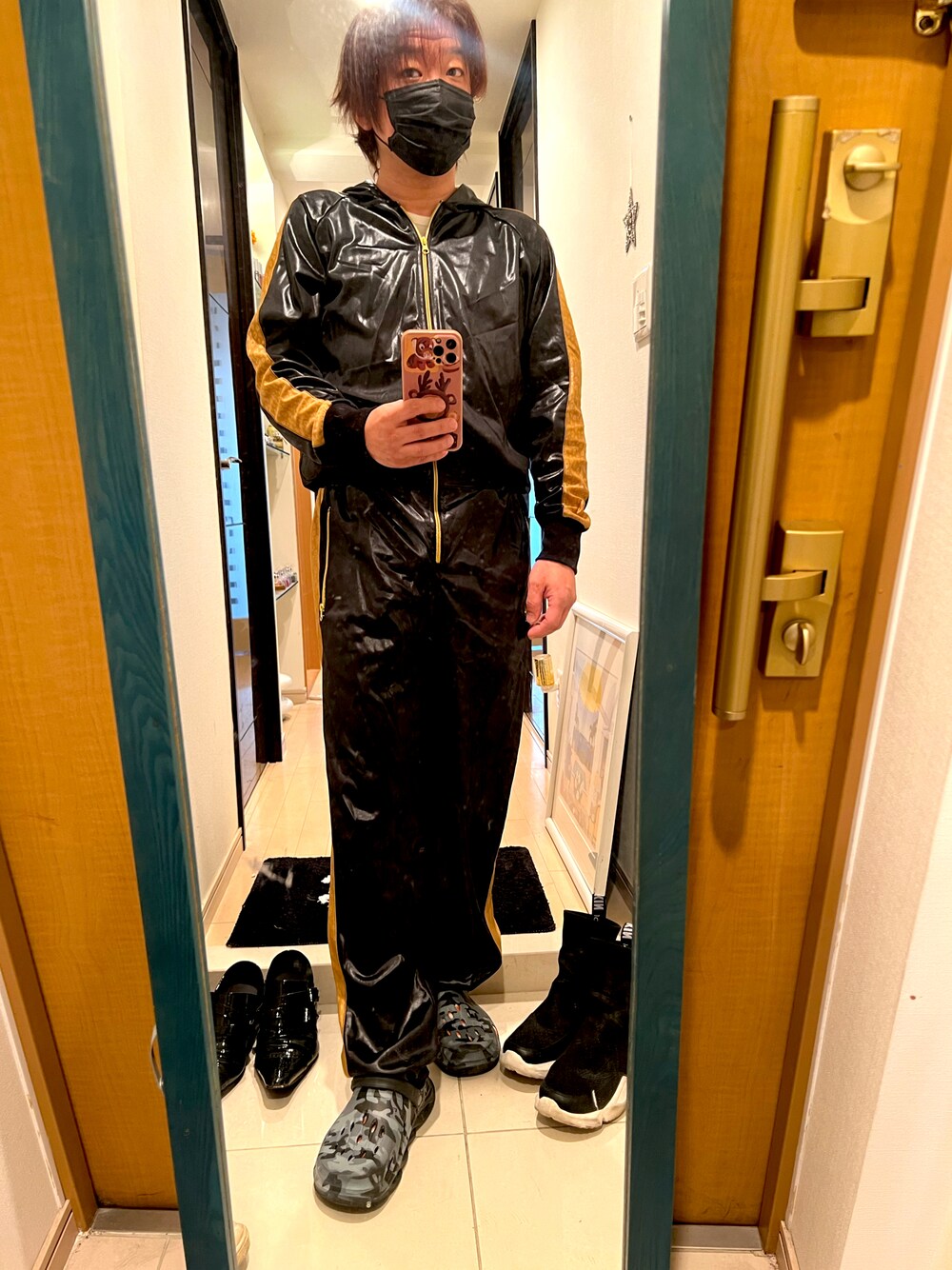 酒で激太りだった頃 着るものに困って買った ツナギ型ジャージ? がクロゼットから出てきたので 着てみました。。。。 地元で買い物するくらいなら コレもありか。