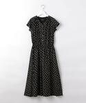 (152㎝) ドットのワンピース1枚で、お出かけスタイルが完成します。 小柄な方は、足首が出るくらいの丈感で、ウエストギャザーで絞られており、首もとがVネックですっきりバランス良く着ていただけます。 透け感のない素材で、1枚で涼しく着ていただけて、この夏オススメのレトロワンピです。