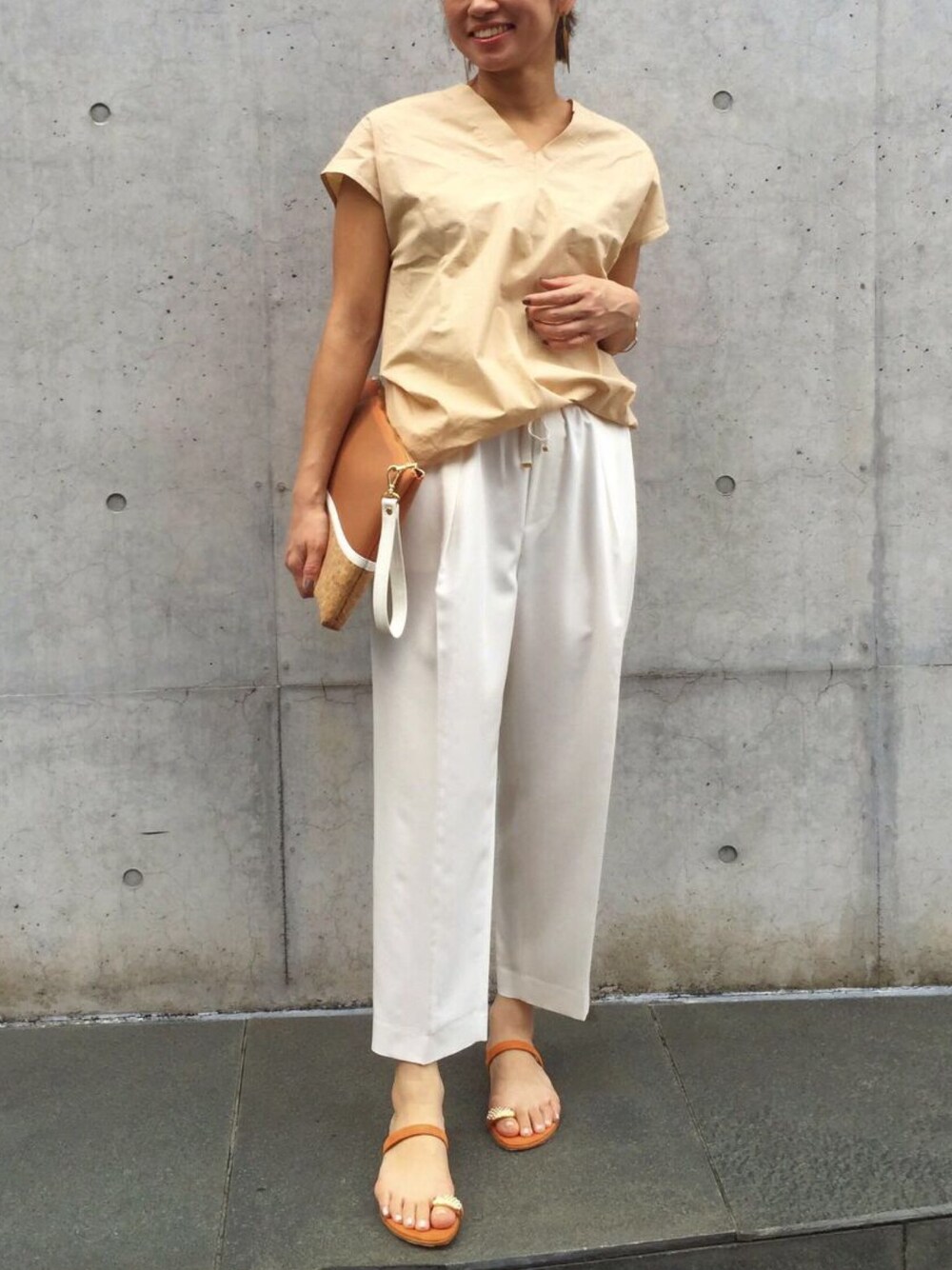 暑い夏にぴったりのリラックス感のあるアーバンリゾートコーディネート。 旬のキャメルやオレンジをプラスして、いつもの夏色とは変化をつけて。