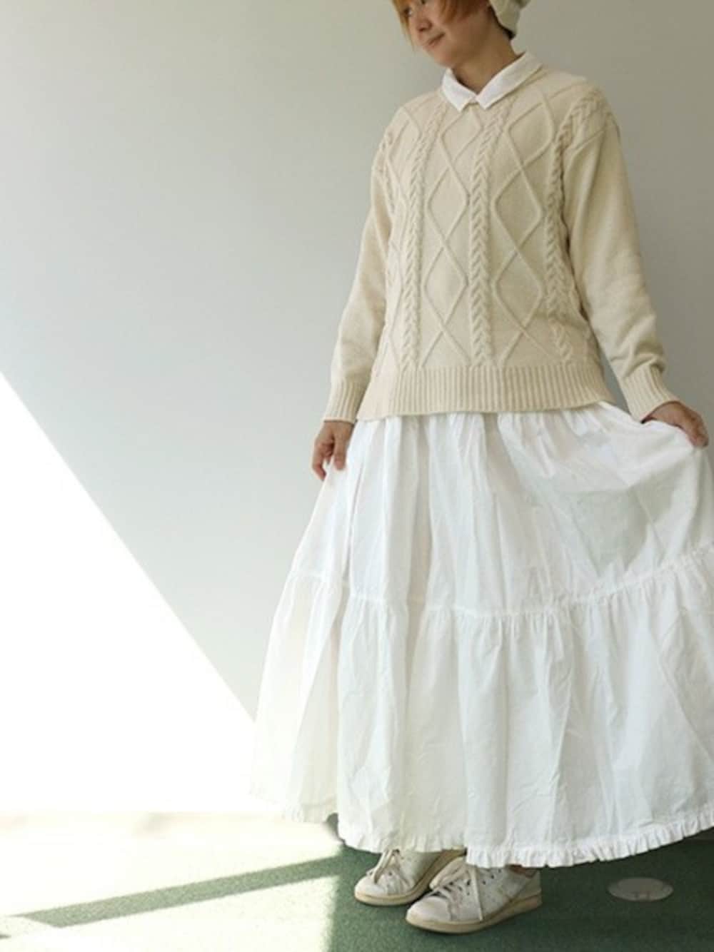 fran de lingerieのテディニットシリーズは、 毎シーズン糸から厳選されていきます。 今年はベルベットのようなツヤ感のあるふわふわ糸を、 ケーブル編みに仕上げた贅沢なシリーズに。 ゆったり目のサイジングなのにキレイなシルエットで、 外にも着ていきたくなる可愛さです。 一番タウンユースしやすい、プルオーバーは、 おうちでも外でも大活躍間違い無し! 温かみのあるオフホワイトをMIXすれば、 白コーデもほっこり暖みが出ます。