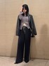 カジュアルになりがちなラインパンツを、レザージャケット合わせでかっちり綺麗めな印象に✨ かっこよく着たかったのでトップスはグレーを合わせて、少し肌見せ意識しました🪽 身長:155cm 店舗名:阪急うめだ店
