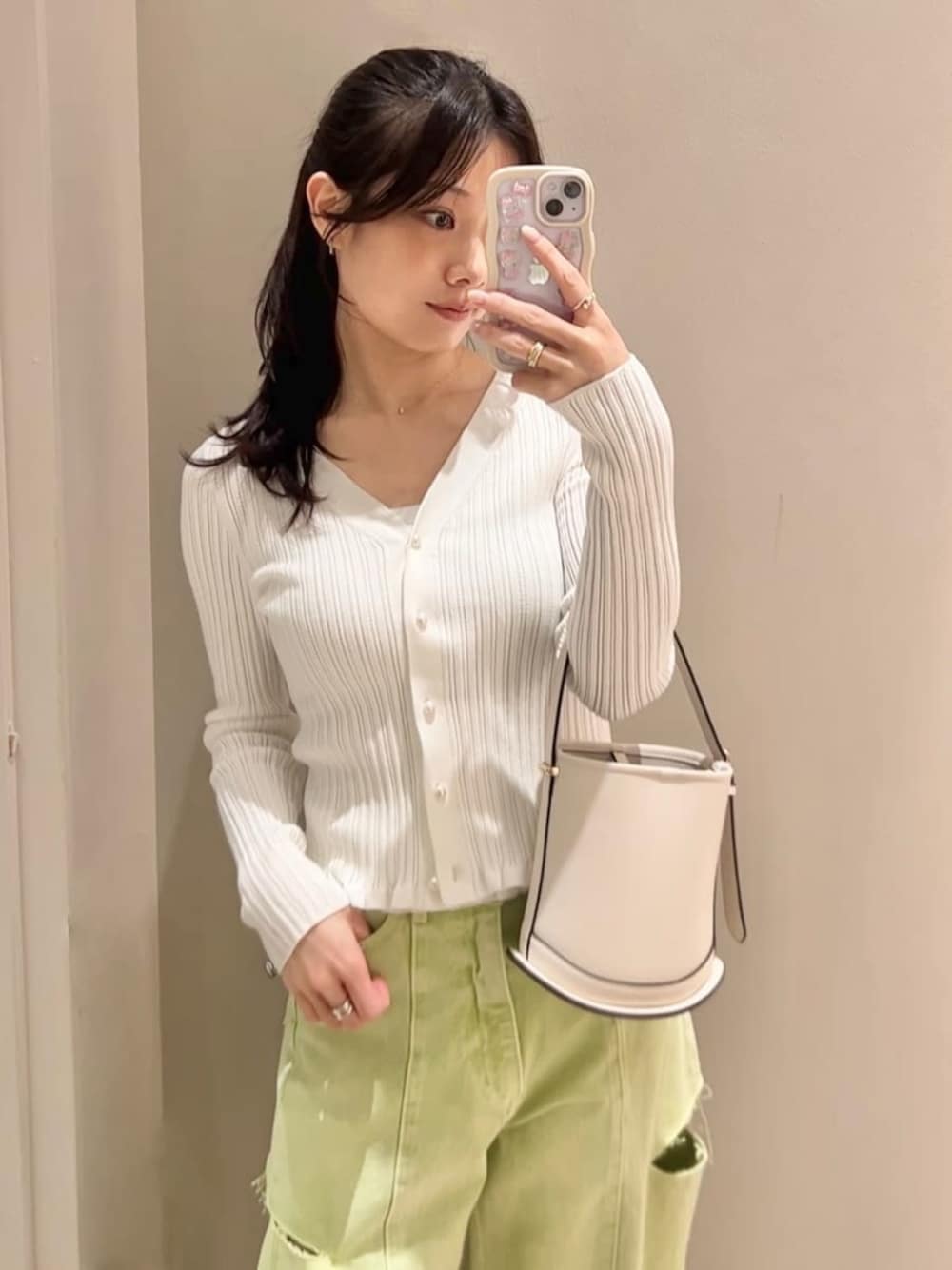 万能に使えるアンサンブルニットは シワになりにくく手洗いも可能! トレンドライクなバレルシルエットのデニムは FRAY I.DオリジナルのMNTカラーが 春らしく明るい印象に🍏 身長:165cm 店舗名:ルクア大阪店