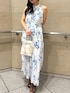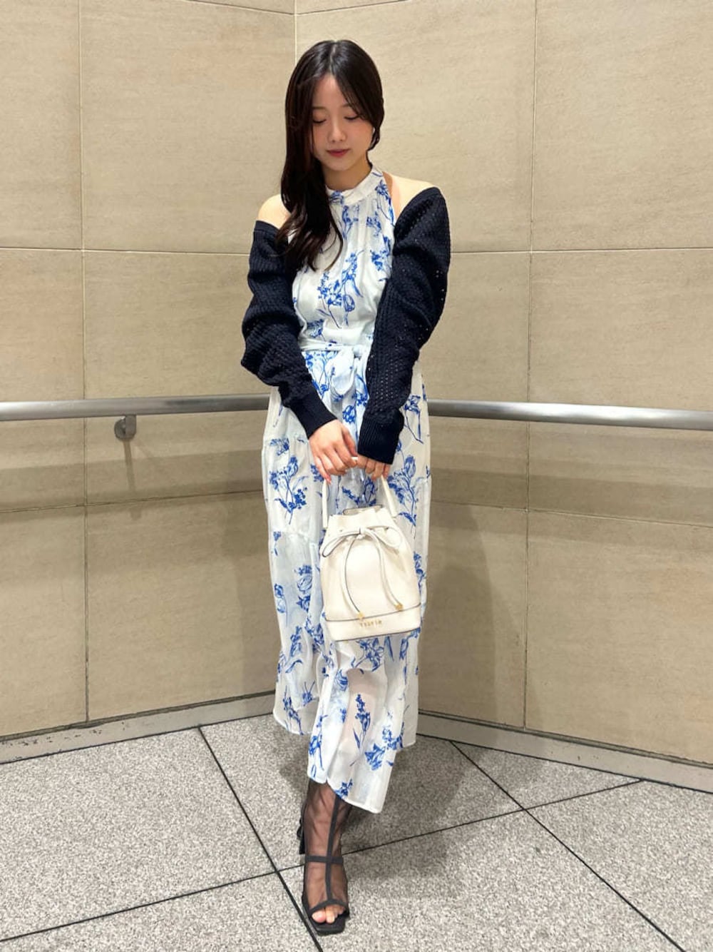 柔らかなシアー素材のティアードが揺れ動く、ホルターネックの花柄ワンピース🪻 リネン素材のボレロカーディガンはOPの上にサラッと羽織れる便利な1枚。 身長:155cm 店舗名:阪急うめだ店