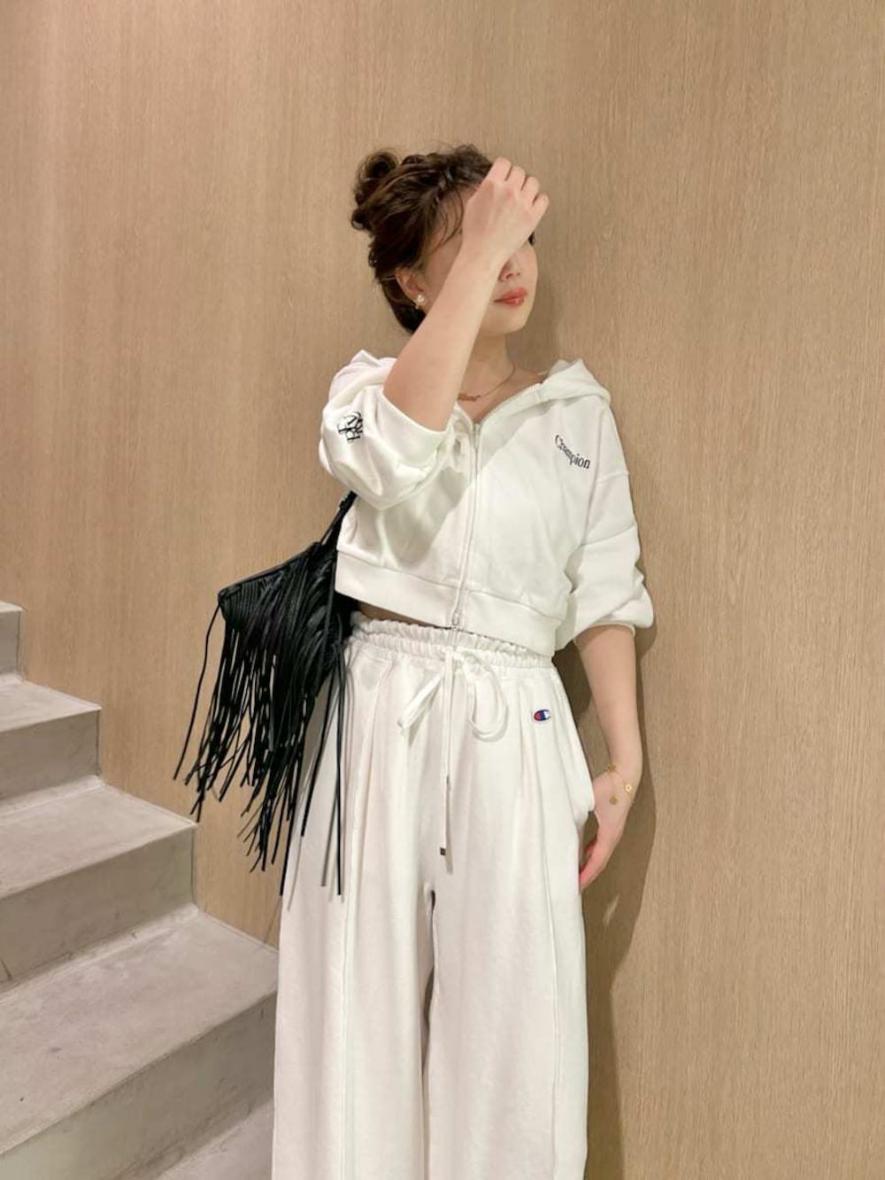 チャンピオン👕 単丈パーカーと ロングパンツでスタイルアップスタイリングに♡ 身長:150cm 店舗名:本社 SNS店