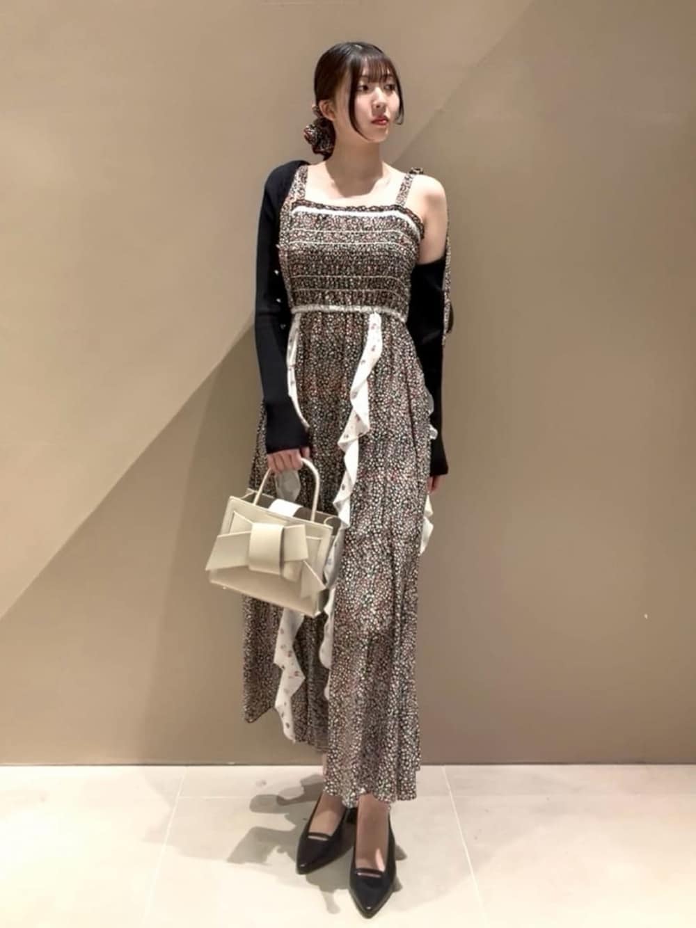 大人気の【LIBERTY】キャミソールドレスは、落ち感のある質感にラッフルフリルを大胆にあしらうことで、クラシカルな可愛さに👗🖤 クラフト感溢れるディティールが着映えるポイントに◎ ショルダーリボンは取り外しが可能で様々なアレンジが楽しめます✨️ 身長:163cm 店舗名:ルクア大阪店