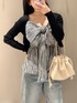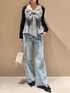 大きなリボンが主役のガーリーコーデ🎀 ブルーデニムを合わせて カジュアルさをプラス👖 モノトーンでまとめて 甘くなりすぎないようにしました🤍 身長:165cm 店舗名:ルクア大阪店