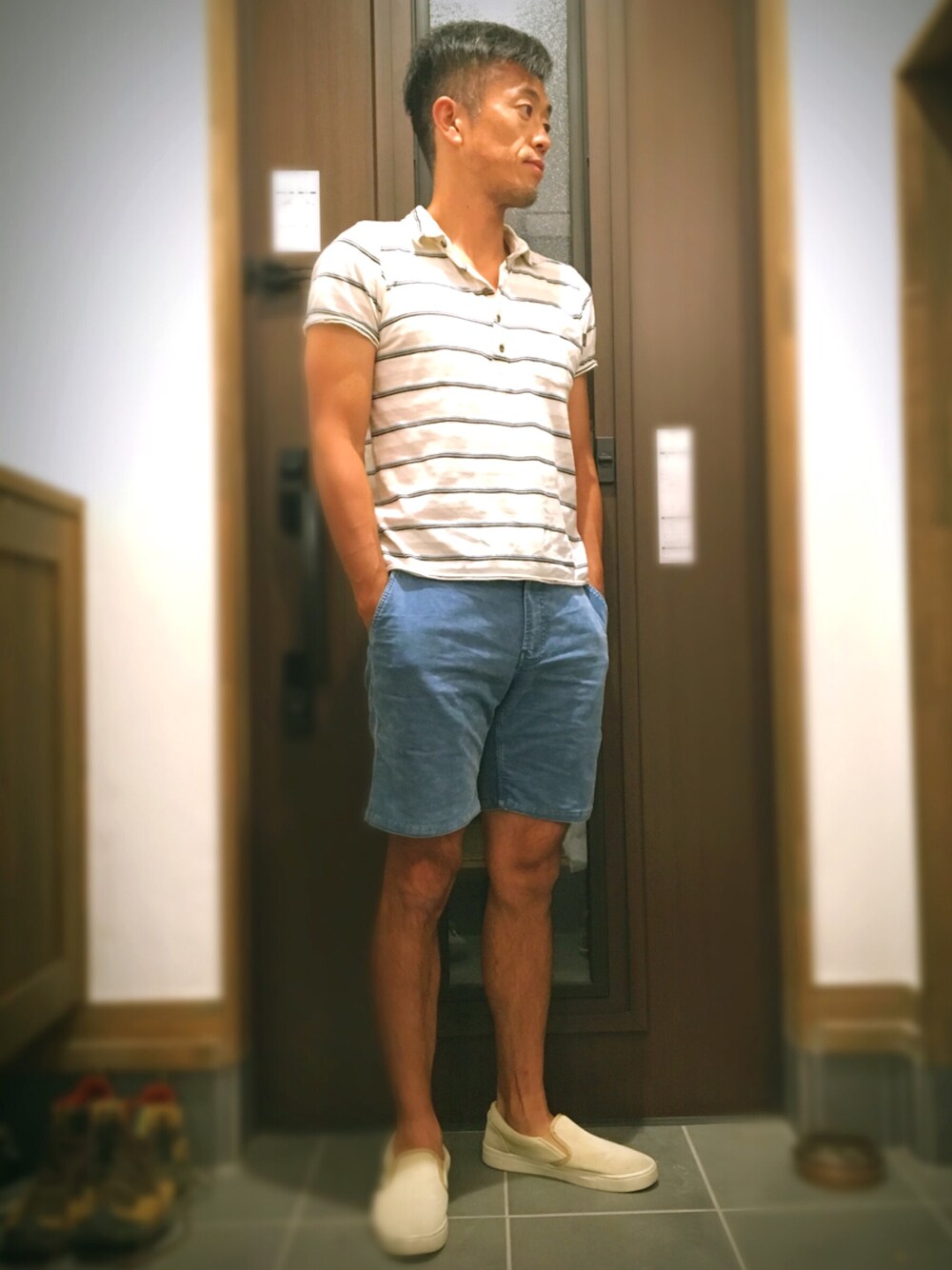 たまにはポロシャツコーデ。 8年以上前に買ったfcukのだけど、 ありそうで無い色の組み合わせのボーダーで 断捨離でも辛うじて残りました笑 それにブルーのハーパンで おっさんらしさを軽減?して、 爽やさを演出♪ それにして、前回の愛車が好評で 見てくれる人も多かったから、 小窓で新たに乗っけてみました😁 いいね、save、宜しくお願いします🙇