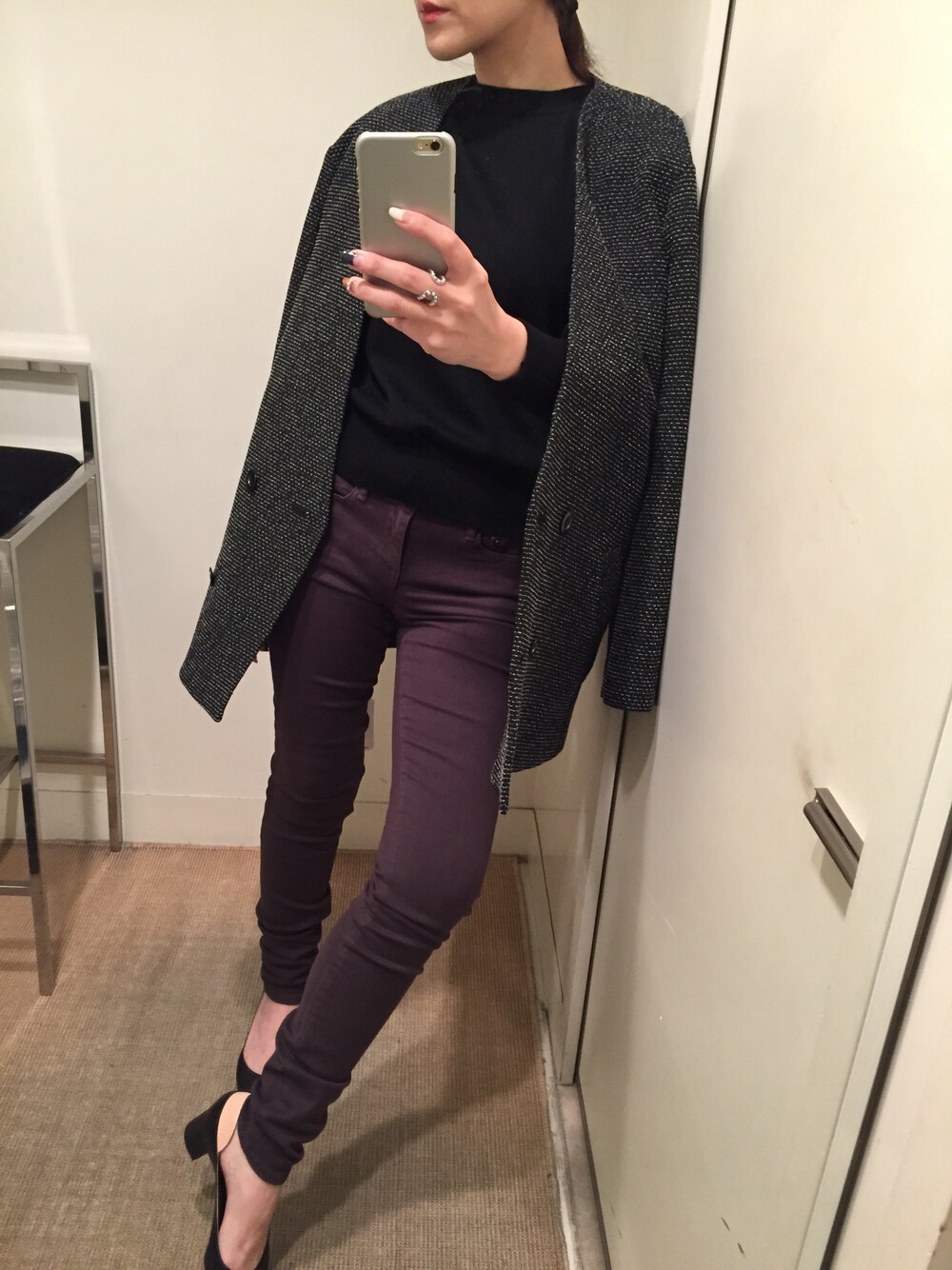 ノーカラージャケット (ブラック系)ノーカラージャケット