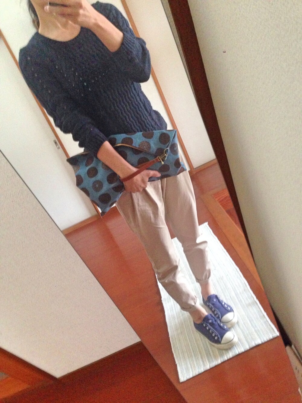 クラッチバッグ作りました(o^^o) 意外と簡単にできて嬉しい♪ ちょっとハマりそうです。 トップス H&M パンツ ZARA スリッポン COEN