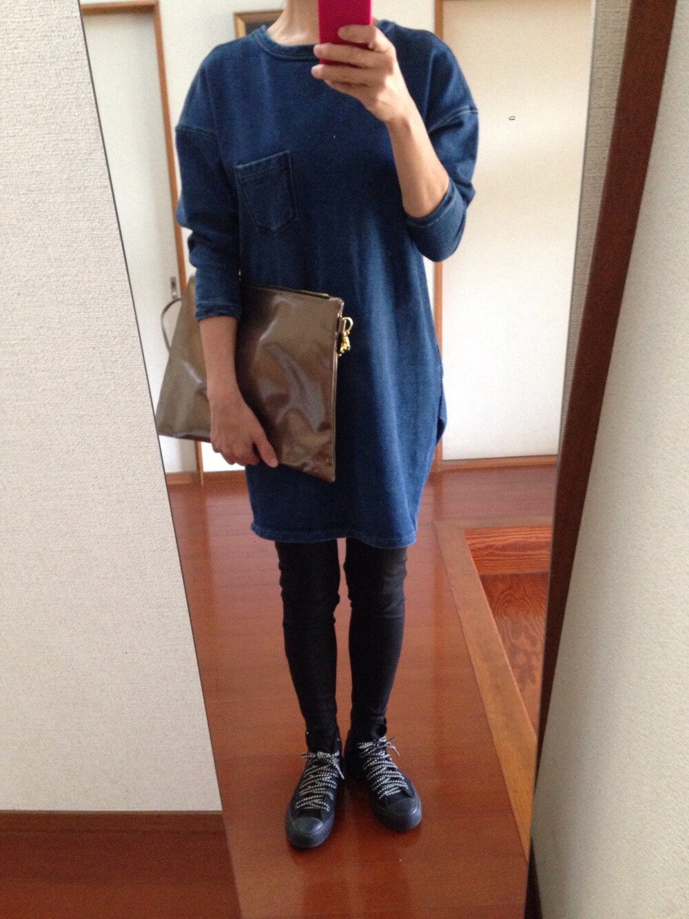 休日限定楽ちんコーデ(^^) 秋ですね〜。 金木犀の良い香りが、部屋の中にまで入ってきています。 今日は暖かいので、このワンピ一枚でOKですが、寒くなったらレイヤードも楽しめそう♪