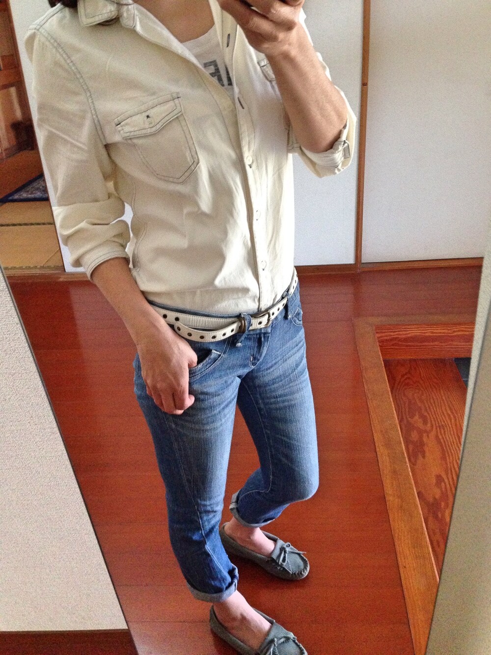 今日は爽やかに(^^) シャツ OLD NAVY デニム moussy 靴 Minnetonka