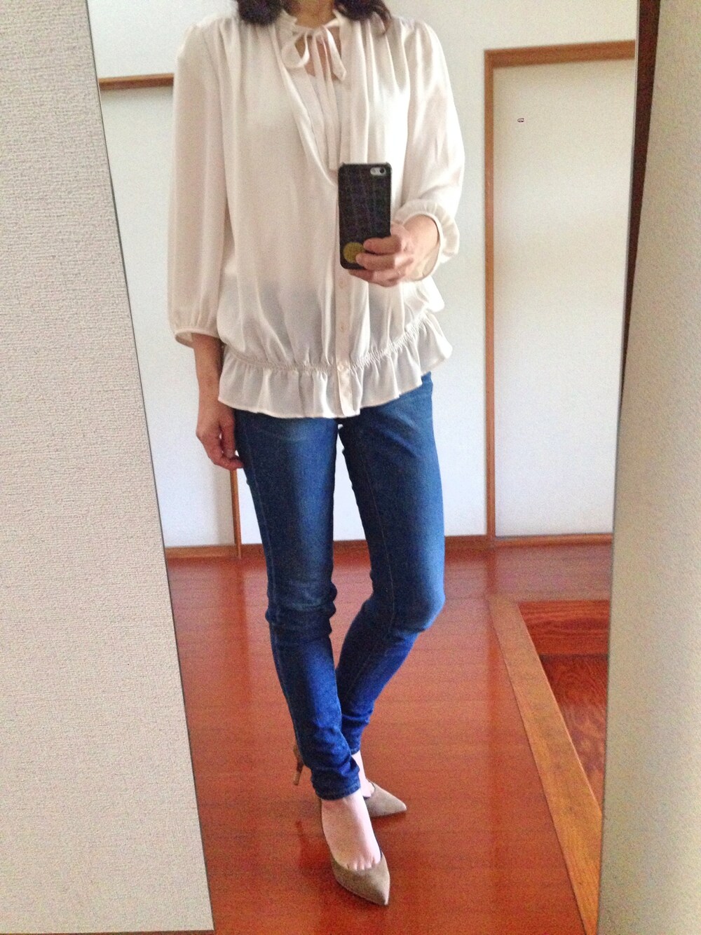 暑くなるそうなのでシースルー♪ ブラウス BEAMS デニム UNIQLO パンプス PELLICO
